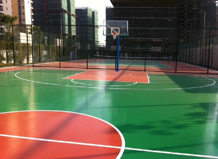 亞克力球場(chǎng)材料分底料、中層料和面料,底層材料和中層材料均為雙組份,由白色有機(jī)丙烯酸乳液(英文亞克力)和綠色無(wú)機(jī)活性粉劑組成,既有有機(jī)材料的韌性又有無(wú)機(jī)材料的耐侯性。其耐老化性能大大超越了用瀝青做底中層料的傳統(tǒng)做法,兩者按一定比例在現(xiàn)場(chǎng)混合均勻后即可現(xiàn)場(chǎng)施工。底層粉料粒徑稍大,以增加球場(chǎng)厚度和耐磨度。底層粉料粒徑稍小,以增加球場(chǎng)表面細(xì)膩度。面漆是單組份材料,選用耐污性能較高的有機(jī)丙烯酸乳液和助劑、色漿混合而成。
