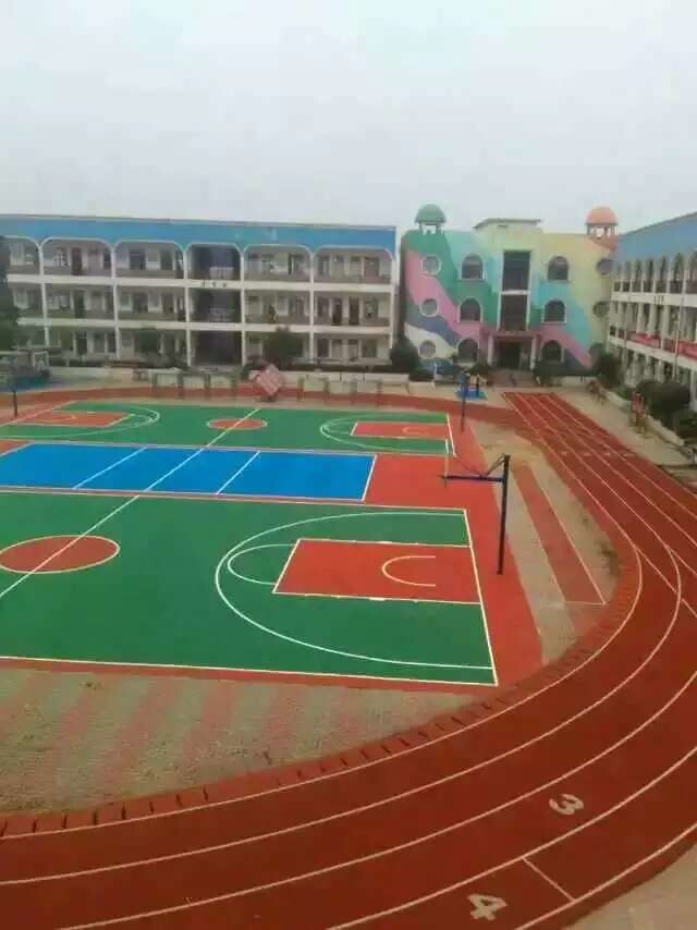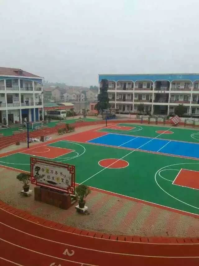 蘄春縣蘄州鎮(zhèn)硅PU籃球場完工,深圳北站丙烯酸材料進場